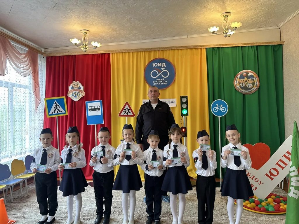 Инспектор по пропаганде безопасности дорожного движения Отделения Госавтоинспекции ОМВД России по Миллеровскому району старший лейтенант полиции Сергей Владимирович Кавелич поблагодарил дошкольников за ответственное отношение к своим обязанностям и активную профилактическую деятельность и вручил им удостоверения юного пешехода.