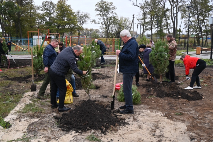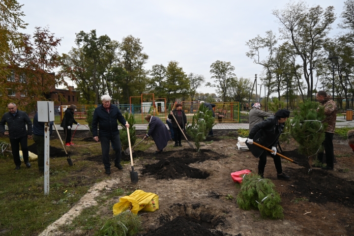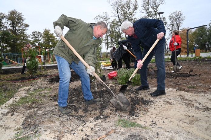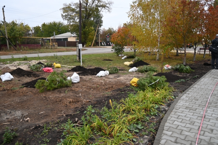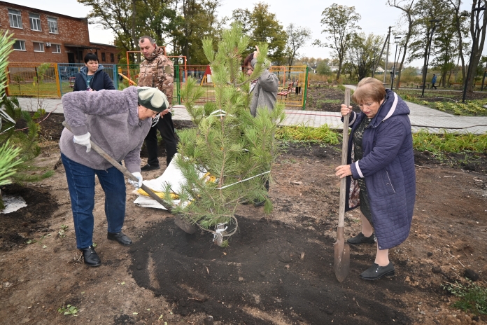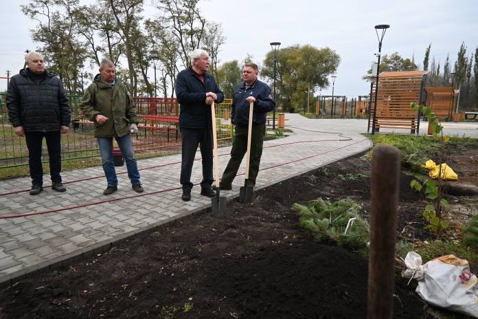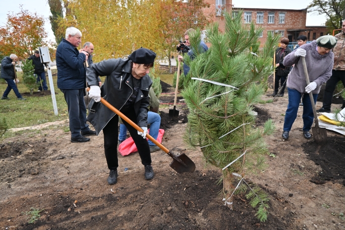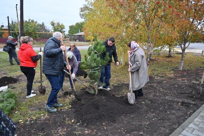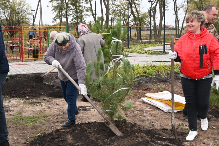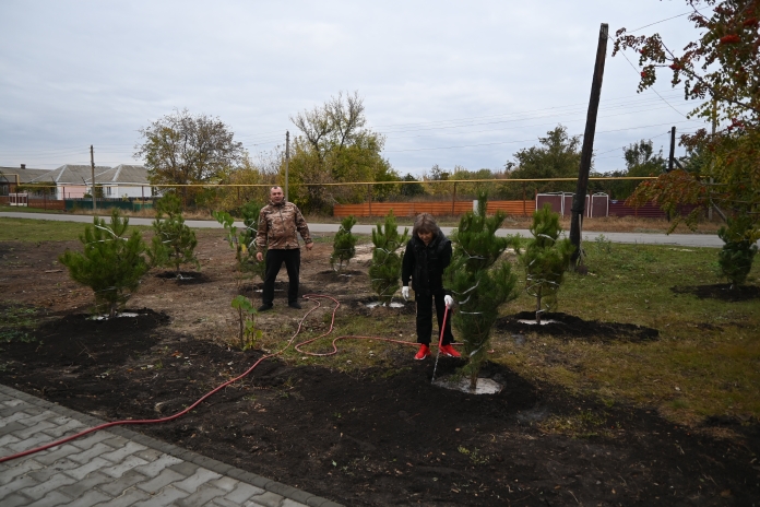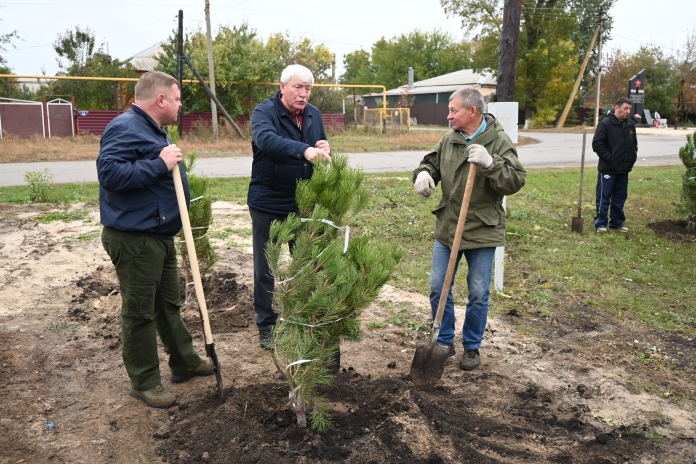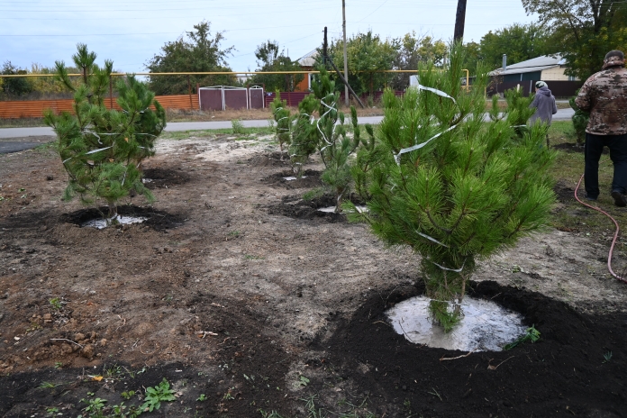 Так, с раннего утра в хуторе Малотокмацком, на новой благоустроенной территории, высадили крымские сосны.