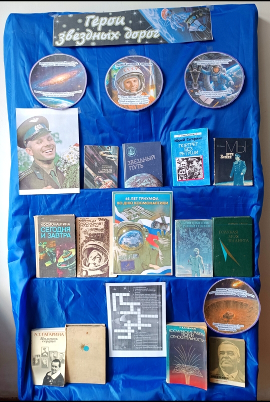 К 65-летию со дня первого полёта человека в космос, совершённого Юрием Гагариным, в Кудиновской библиотеке оформили тематическую выставку «Герои звёздных дорог». Экспозиция приглашает читателей окунуться в историю освоения космоса и узнать больше о легендарных покорителях Вселенной.
