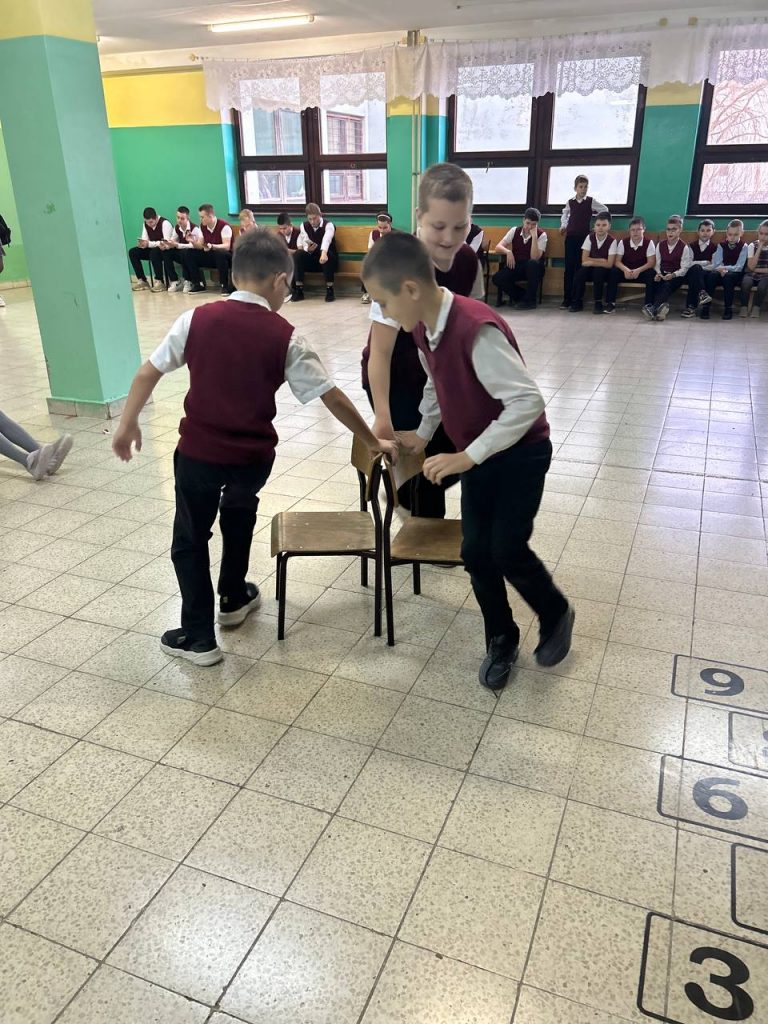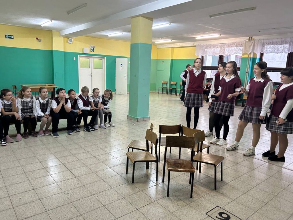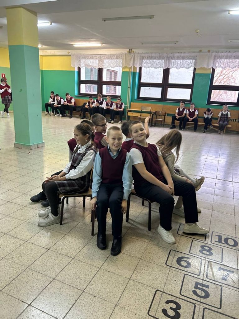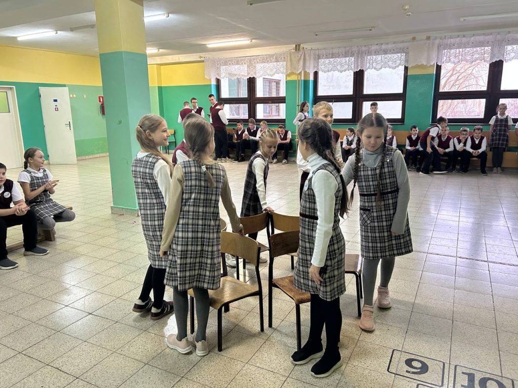 Ребята собирают интеллектуальные, подвижные игры для учеников начальных классов. На больших переменах группы восьмиклассников в разных рекреациях организуют занятия с малышами.