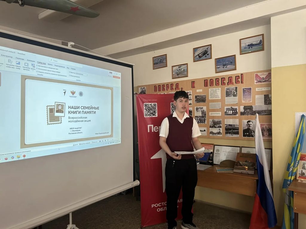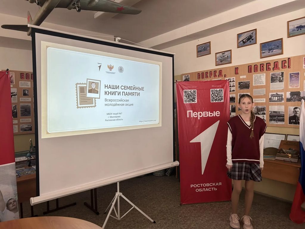 10 апреля в лицее №7 состоялась всероссийская акция «Наши семейные книги памяти». В ней приняли участие 34 ученика 5–11 классов. Торжественное открытие прошло в музейном комплексе «Наследие». На мероприятии также присутствовали учащиеся 5–7 классов.