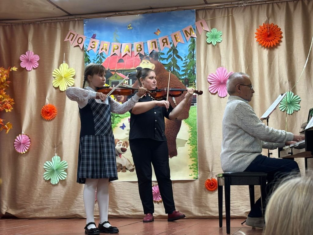 Открыли концертную программу вокалисты Татьяна Пороло, Марина Кирьянова (преп. М.А. Петрова), класс синтезатора представили София Кравченко, Полина Сульженко (преп. Н.М. Агеева). Учащиеся хореографического отделения (преп. С.Г.Рычкова) дебютировали со своей осенней постановкой. Скрипку представила Анастасия Тарханова (преп. С.В. Антипова), Анна Яценко и София Кирьянова (преп. В.П.Ромащенко) сыграли на фортепиано Преподаватели Н.М.Агеева и Е.И. Саитгалина продемонстрировали гитары в дуэте.