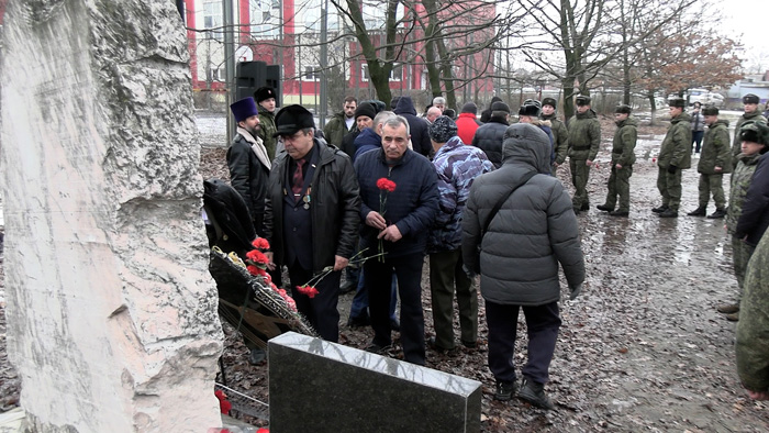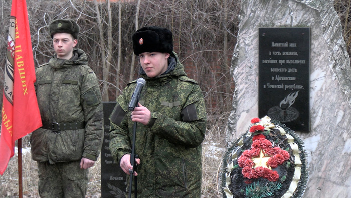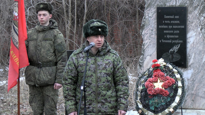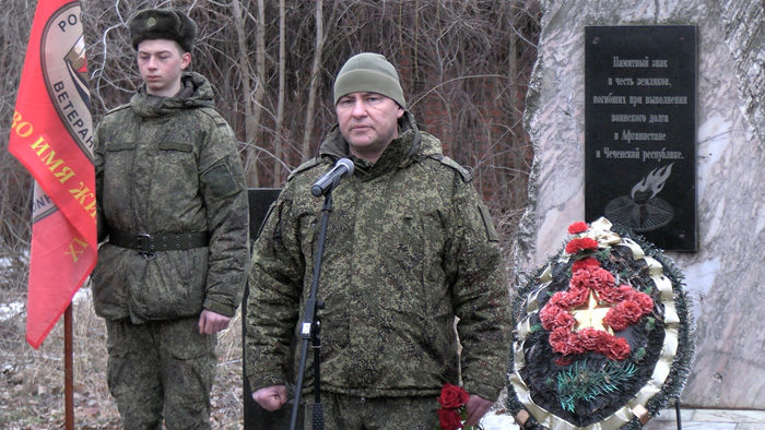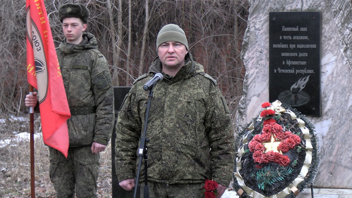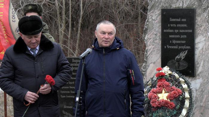 Заместитель командира полка по военно-политической работе восковой части 75391 А. О. Шупик, выступая на митинге, вспоминал о военнослужащих, исполняющих свой долг за пределами Отечества.
