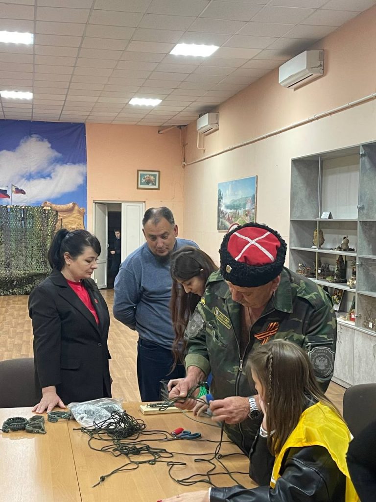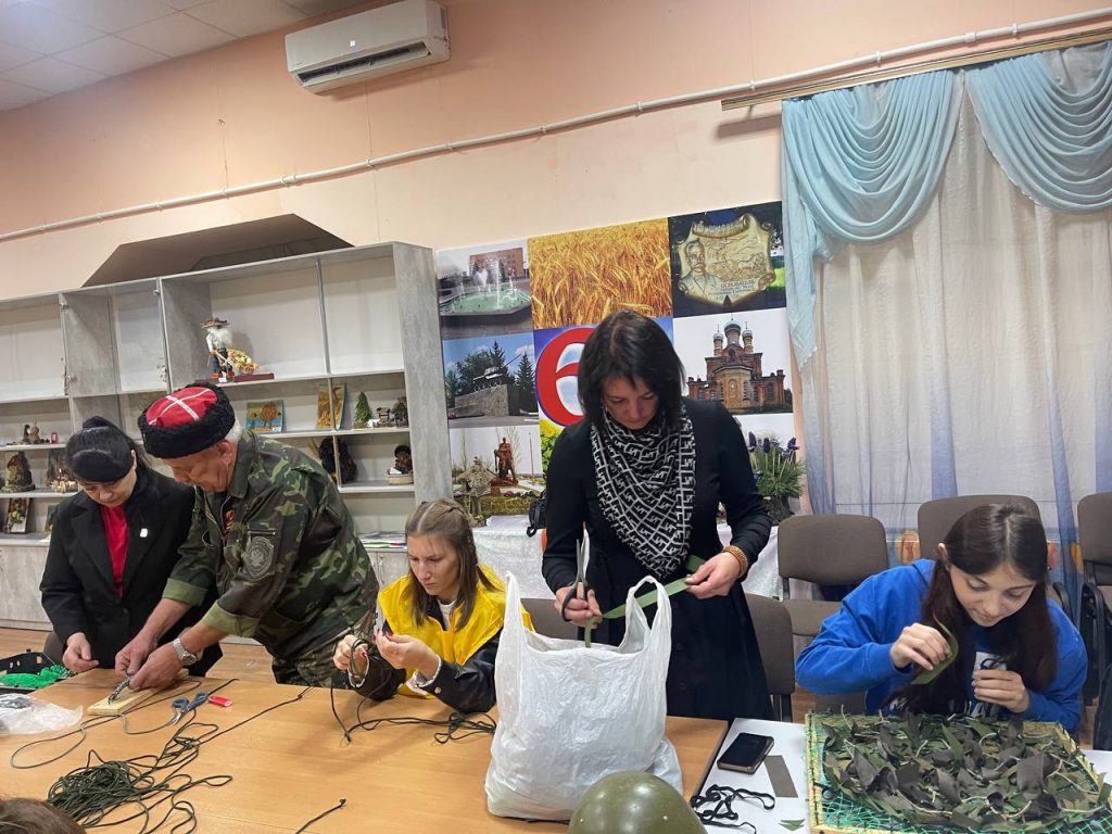 Вместе участники изготовили 12 браслетов и 3 нашлемника, которые будут переданы в региональный штаб #МыВместе в Ростове-на-Дону.