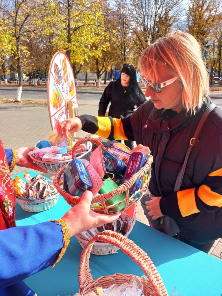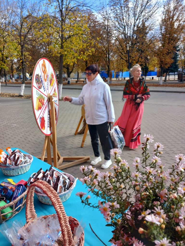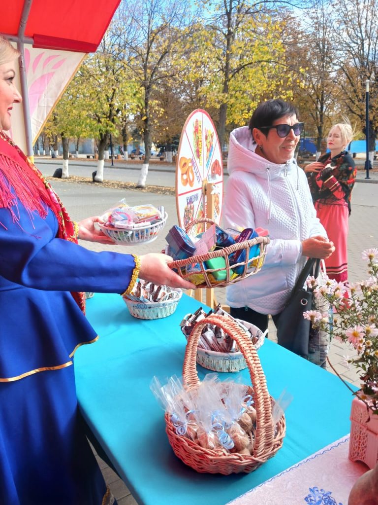 На площади звучали казачьи композиции, где желающие смогли потанцевать или спеть полюбившуюся песню. Жители и гости города приняли участие в беспроигрышной лотерее, покрутив колесо «Фортуны». Каждый участник получил сладкий подарок или ценный приз. Гости праздника смогли оценить выставку декоративно – прикладного творчества, созданную руками специалистов дома культуры, сделать фото у оформленных фото- зон или с красивыми казачками.