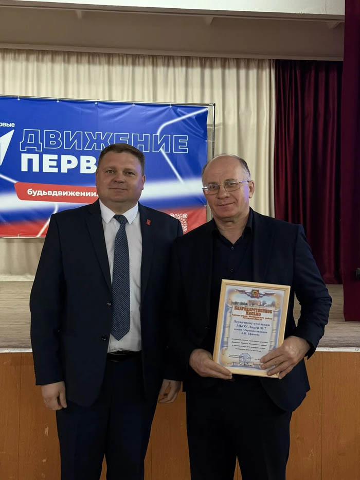 Региональные награды от Движения Первых вручены наставникам, проявляющим личную включенность и превращающим Движение в жизнь: Анатолию Цысарю, заместителю директора лицея № 7 и Владимиру Шаповалову, учителю физкультуры школы № 2.