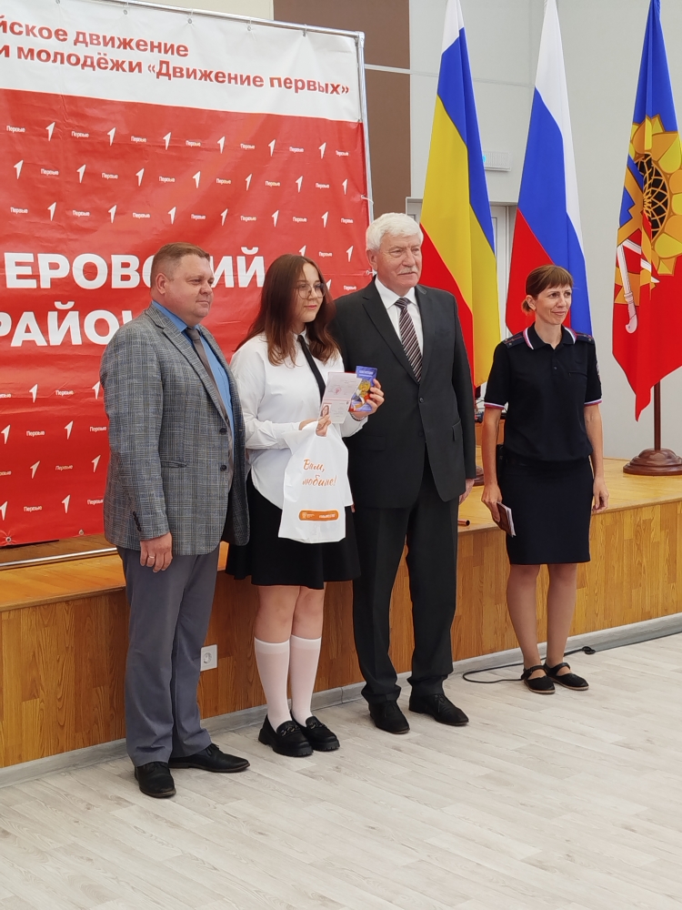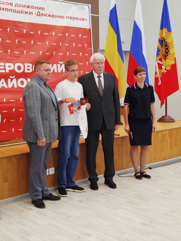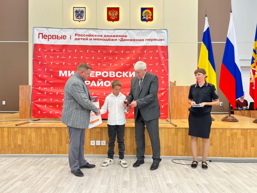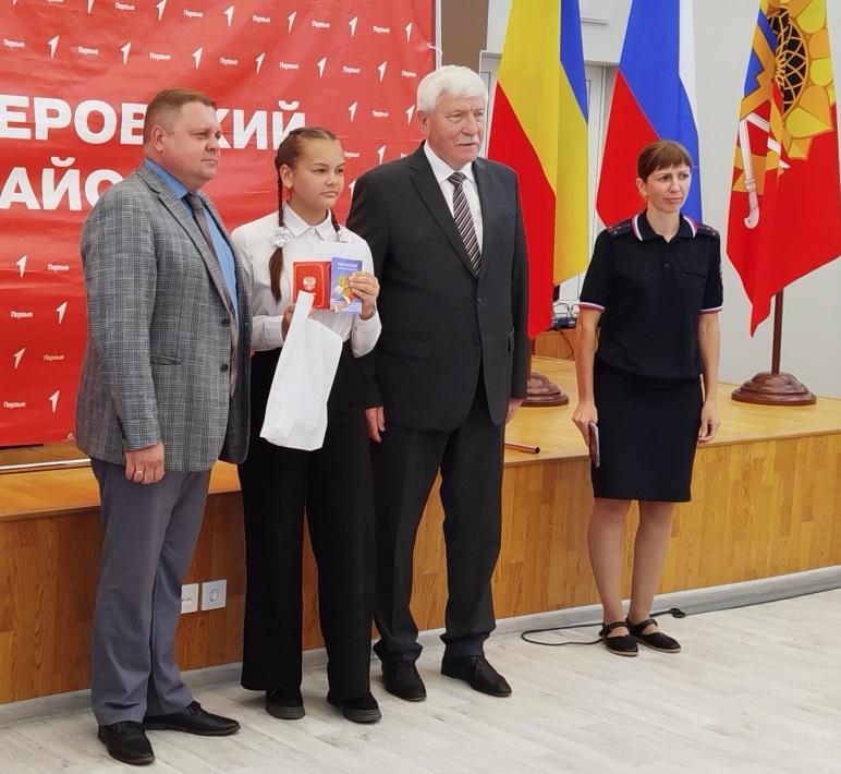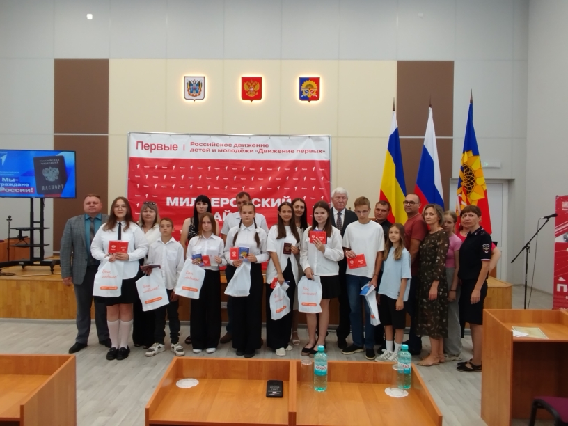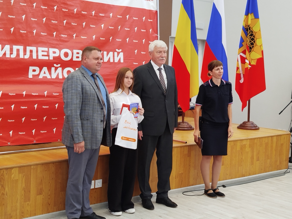 Семь представителей молодежи: Данил Борисов, Ангелина Боженко, Дарья Голокозова, Дарья Гончарова, Арсений Кравцов, Милана Кудрявцева и Вероника Савченко, достигшие 14-летнего возраста, получили свой первый и главный документ из рук заместителя председателя Законодательного Собрания Ростовской области, председателя комитета по аграрной политике, природопользованию, земельным отношениям и делам казачества Вячеслава Василенко и старшего инспектора отдела по вопросам миграции ОМВД России по Миллеровскому району, старшего лейтенанта полиции Виктории Колесник.