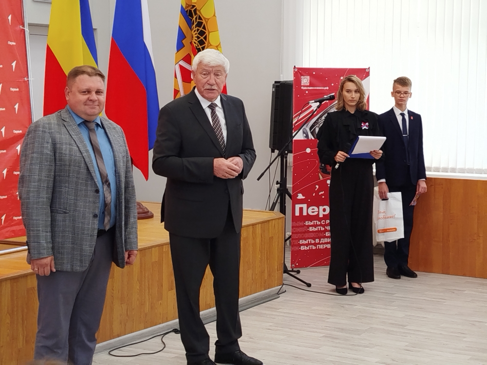 Брошюры с главным законом страны — Конституцией Российской Федерации и памятные подарки в рамках всероссийской программы Движения Первых «Мы — граждане России» ребятам вручил глава администрации Миллеровского района Олег Коваленко. Он пожелал школьникам успехов в учебе, развитии и становлении как граждан своей страны, проникнуться значимостью происходящего события, сохранить его в сердце и пронести через всю жизнь.
