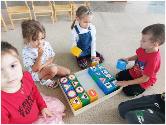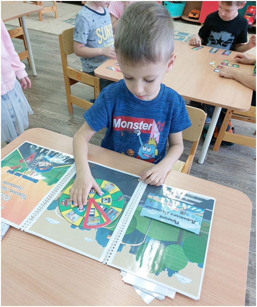 В классе ПДД, который специально оборудован, для изучения дошколятами правил дорожного движения, ребята вспоминали обозначения дорожных знаков; моделировали движение по «улицам», расположенным на игровом макете. А сенсорные плакаты озвучивали малышам задания и сообщали о правильности их выполнения.
