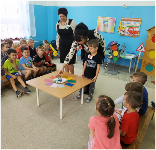 Ребята из отряда ЮПИД «Светофорчик» проверяли свои знания, выполняя задания на больших цветах (они же круги Луллия).