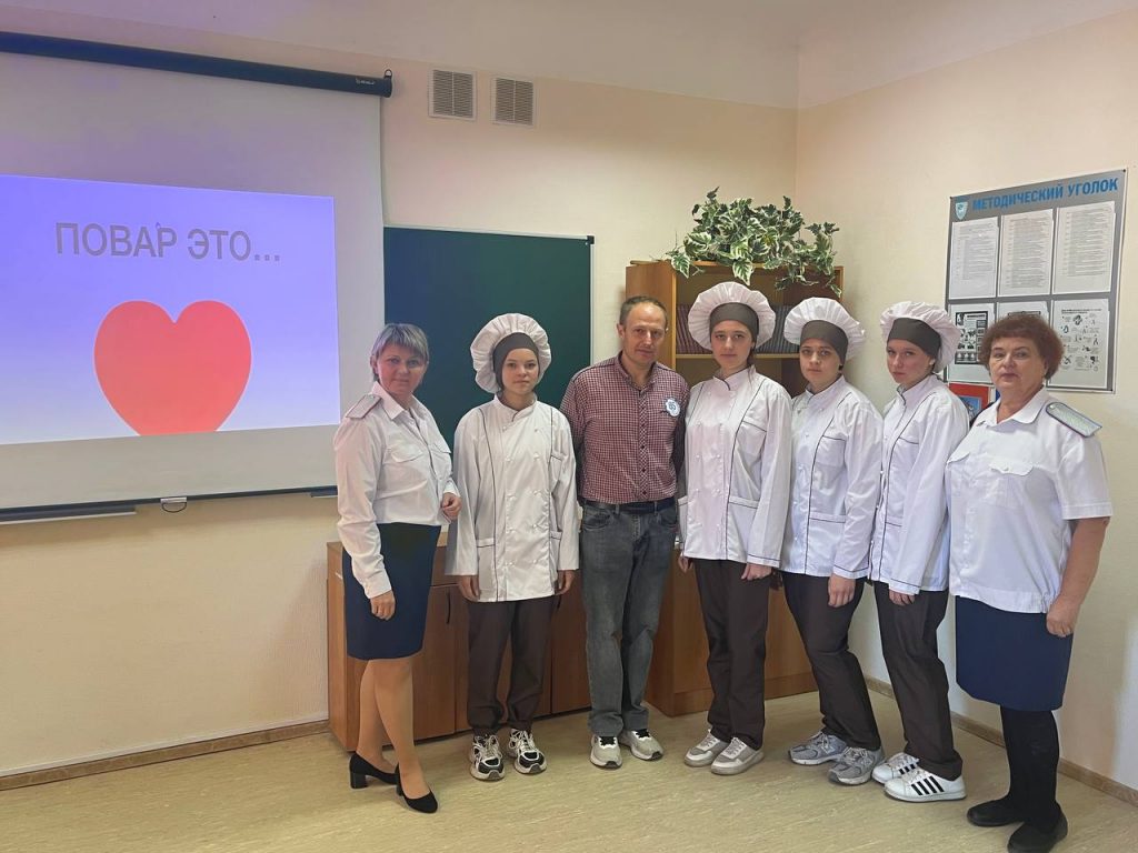 Площадка «Повар,кондитер». В начале была представлена презентация «Повар, кондитер – самая лучшая профессия». Студентки 4 курса Нина Мирошникова, Елизавета Кулешова и Мария Жила рассказали об истории возникновения профессии, перспективах трудоустройства, какими личностными и профессиональными качествами должен обладать повар, кондитер. Прочитали стихотворения о профессии.