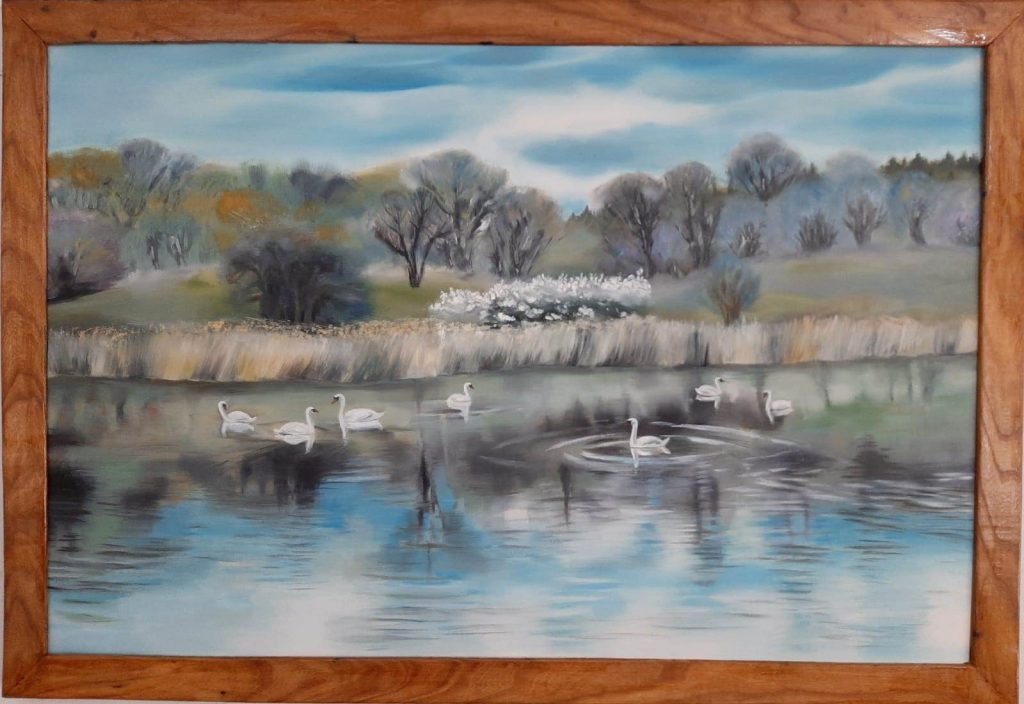 Больше всего зрителей собралось у картины под названием «Пруд Казак». Как будто частица живой природы расширила рамки выставочного зала и освежила его своим теплым дыханием. О том, что история пруда относится к далекому 17 веку, рассказал муж художницы Валерий Викторович. Она поблагодарила его за поддержку, а также высказала слова признательности сотрудникам музея за возможность представить свои работы.