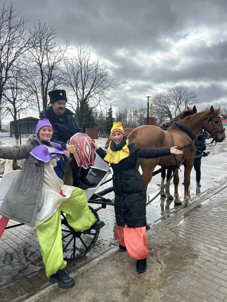 На площади звучали веселые песни, прохожих угощали блинами с чаем, а желающих приглашали прокатиться на фаэтоне.