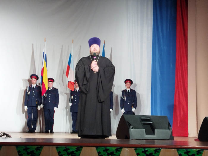 Торжественное открытие Года защитника Отечества проходило при участии представителя духовенства – настоятеля Свято-Андреевского храма и духовного наставника миллеровских православных волонтеров иерея Симеона Есина. Поздравляя собравшихся с важным событием в жизни района и всей страны, священнослужитель призвал миллеровцев хранить духовные ценности, быть стойкими в испытаниях, стремиться к добрым делам и ориентироваться на нравственный подвиг тех, кто нашел в себе мужество в трудный для Родины час, встать на ее защиту. Пожелал всем здоровья, крепости сил в трудах на благо родной земли.