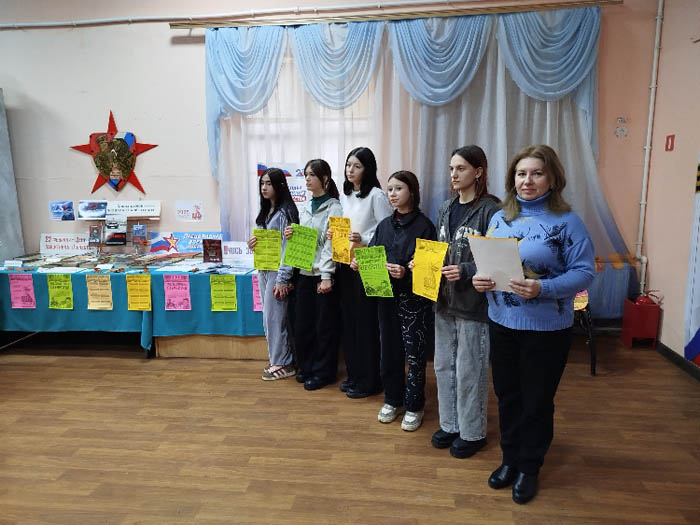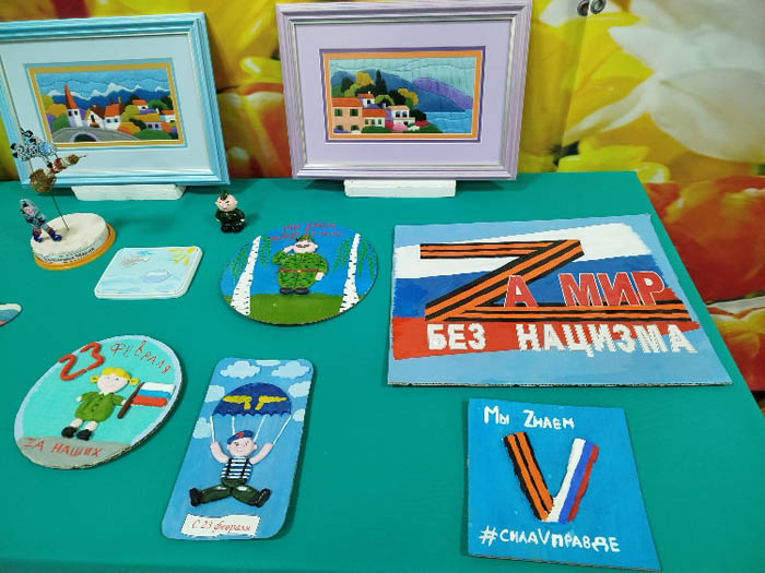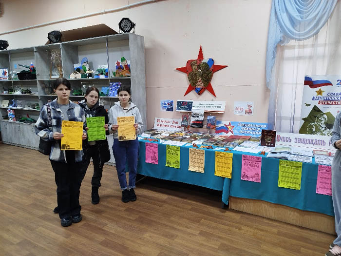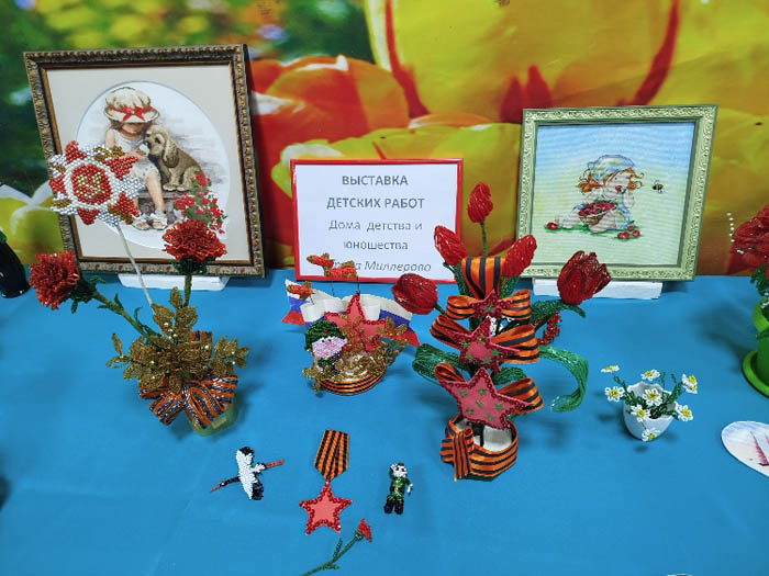 Тем, кто отстаивал свободу и независимость нашей страны в далекие 1940-е, сейчас стоит на защите интересов Отчизны, была посвящена выставка творческих работ учащихся Детской школы искусств и детских объединений городского Дома детства и юношества, развернутая в фойе Дом культуры. Тематическую книжную выставку «Учись защищать Родину» для юных участников мероприятия организовала Миллеровская межпоселенческая центральная библиотека.