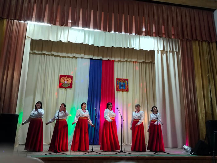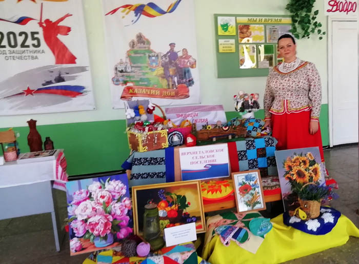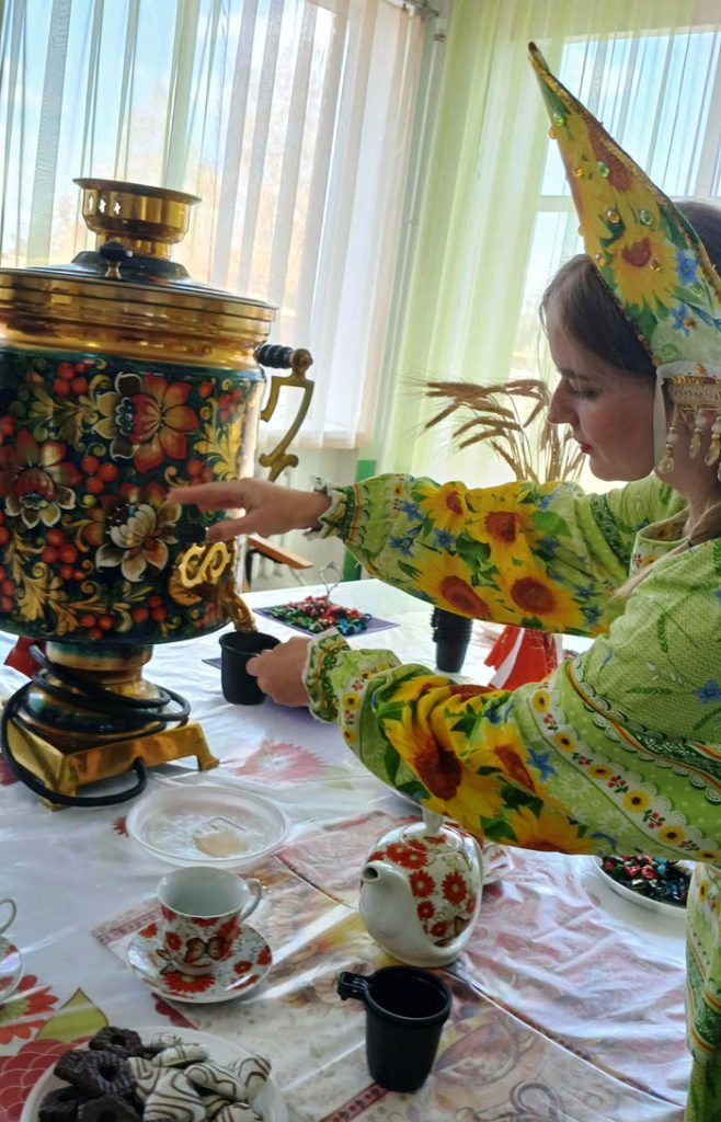 На центральном входе в сельский ДК гостей праздника приветствовали девушки в русских нарядах. Все желающие могли угоститься ароматным чаем из разнотравья нашего края, сделать фото на память у стилизованных выставок народного творчества и на книжной выставке — панораме «Достопримечательности Миллеровской земли».