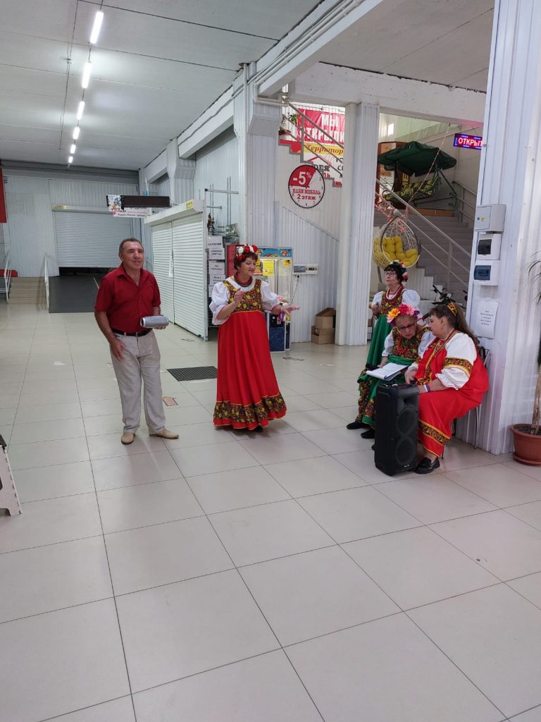 14 июня, творческие коллективы и сольные исполнители Центра культуры и досуга г. Миллерово под руководством Игоря Викторовича Большенко, в холле торгового комплекса, организовали и провели праздничный концерт ко Дню России и в поддержку волонтёров, плетущих маскировочные сети.