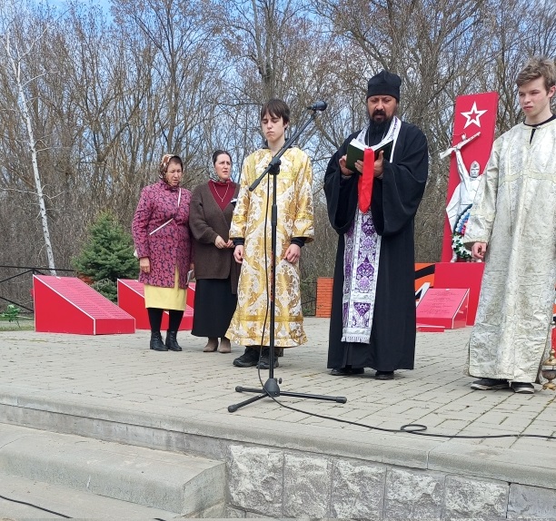 В слободе Позднеевке Миллеровского района 31 марта настоятель храма Архангела Михаила иерей Иоанн Агаев совершил заупокойную литию по погибшим воинам — участникам СВО.