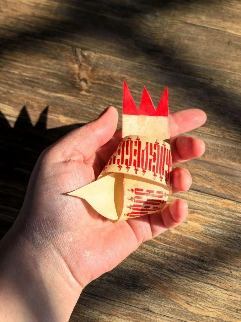 Ребятам показали поделки в древнерусском стиле. На крылышках каждой птички русской вязью написано «Христос Воскресе!». Поговорили об образе птицы в христианской культуре, художественном творчестве, о красоте в цвете, композиции. Обсудили с участниками мастер-класса, что первоначальный посыл человека в творчестве – желание украсить окружающий нас мир.