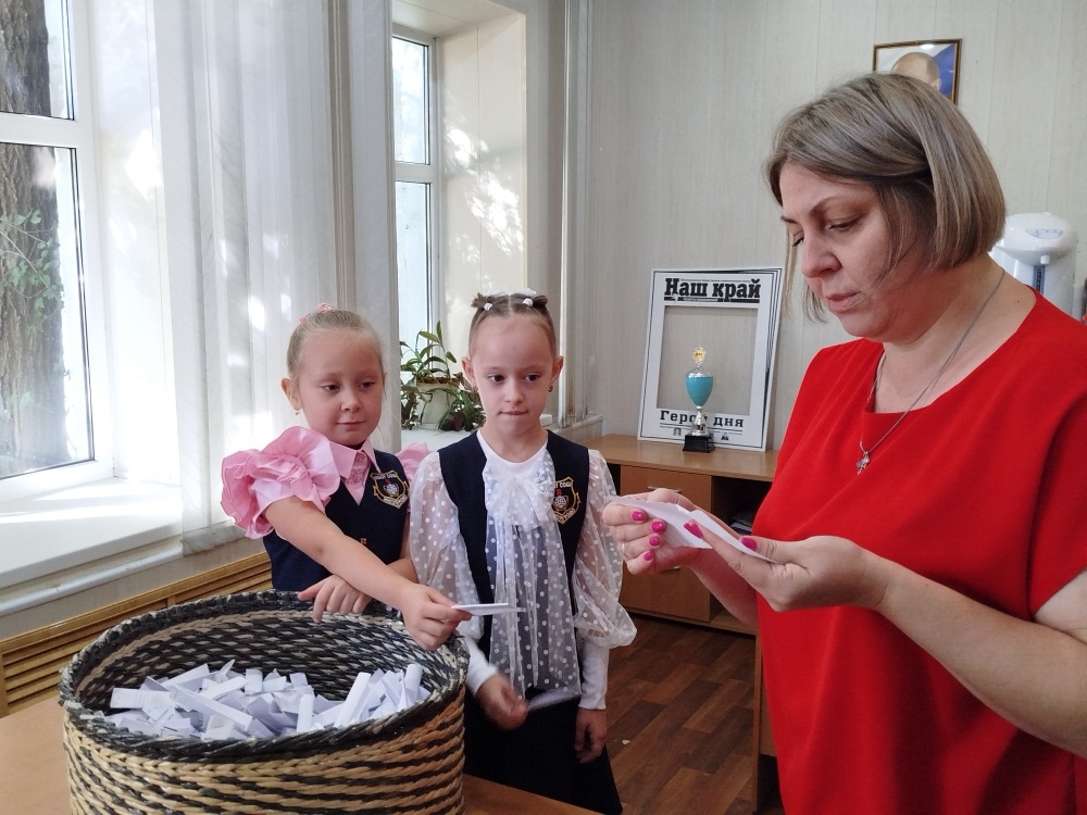 На этот раз важную и ответственную миссию по определению победителей доверили первоклассницам Варваре и Ксюше. Обе девочки учатся в 1«Б» классе школы № 8, а до это вместе ходили в детский сад № 1. Несмотря на то, что беззаботная дошкольная пора осталась позади, уроки и домашние задания их не пугают. Бойкие, жизнерадостные гостьи редакции, уверенно вынимали из большой коробки счастливые квитанции.