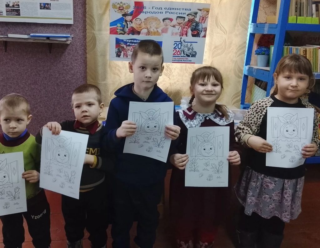 Сначала дети познакомились с книжной выставкой «Народов много — Родина одна». Затем они активно участвовали в викторине «Угадай героя» по русским народным сказкам, вспоминая любимых персонажей.