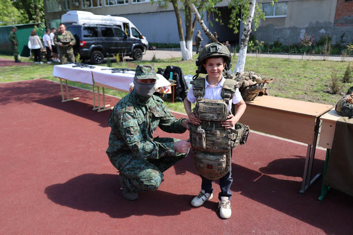 Помимо конкурсных заданий в этот день для детей были организованы полевая кухня, показательные выступления кинолога с собакой, выставка вооружения.