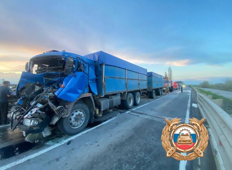 Водитель автомобиля КамАЗ-53212 с прицепом в составе двигался со стороны Котельниково в направлении села Песчанокопского, но не рассчитал безопасную дистанцию до движущегося впереди КамАЗ-6560.