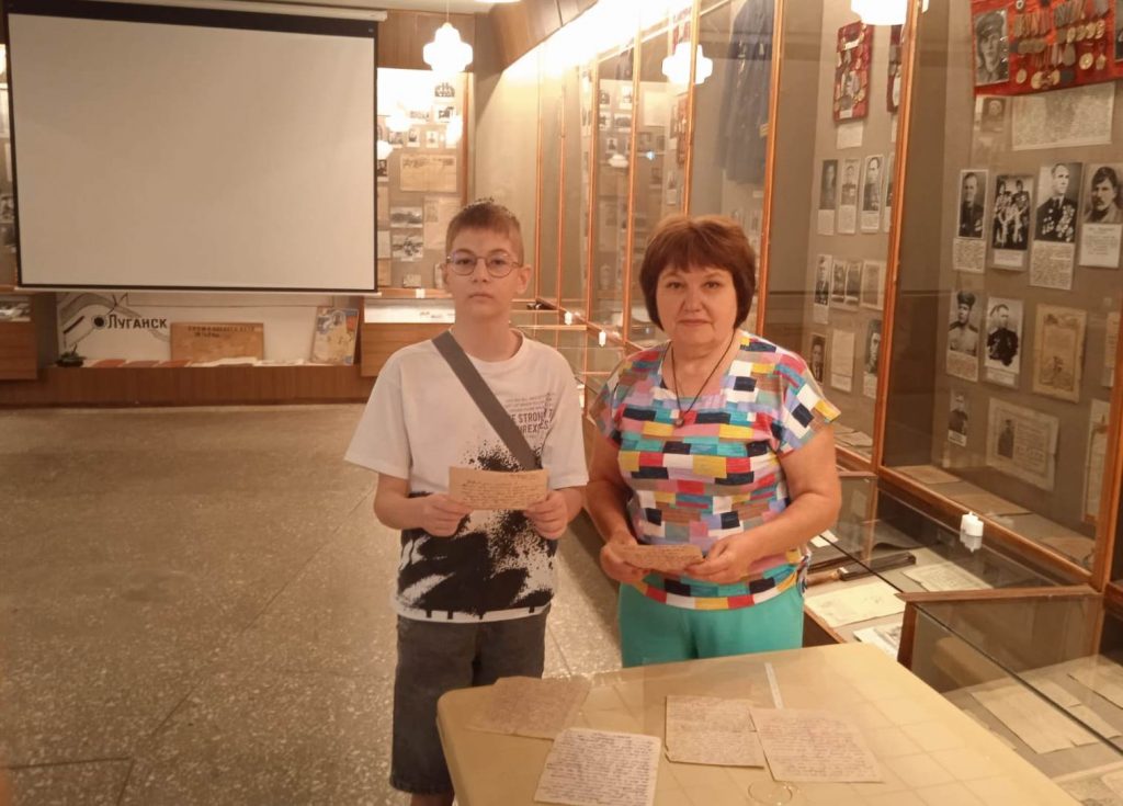 Из фондов временного хранения сотрудники музея подарили Семену памятные реликвии, которые будут теперь храниться в семье ветерана. Это письма Марии Бочковой к своему любимому Ивану Петрусенко. Они в целости и сохранности, прошли с бойцом военный путь разведчика, пулемётчика, старшины мотострелковой бригады. Петрусенко воевал под Харьковом, под Сталинградом, дошёл до Кёнингсберга,потом была Маньчжурия. Остался жив и сумел сохранить письма своей любимой. Мария в те грозные годы вместе с земляками прокладывала противотанковые рвы под Луганском.