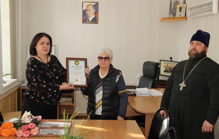 Алла Владимировна и отец Симеон по поручению руководства Автономной некоммерческой благотворительной организации «Русский ветеран-доброволец» вручили коллективу и журналистам заслуженные награды.