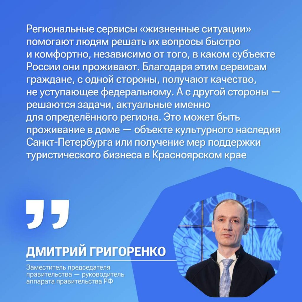 Как отмечает куратор проекта, заместитель председателя правительства Дмитрий Григоренко «жизненные ситуации» помогают людям решать вопросы прежде всего быстро и комфортно. Работа по формированию и запуску сервисов ведется в рамках реализации федерального проекта «Государство для людей».